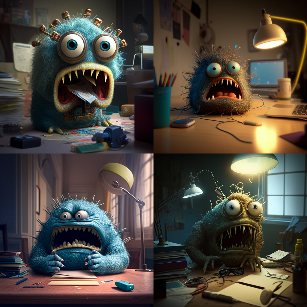 When you do make it into MidJourney, you can recreate our procrastination monster with this prompt: